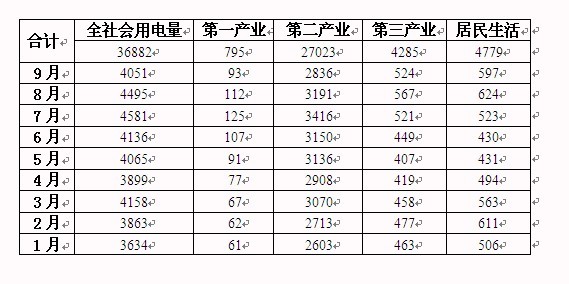 2012年1-9月我國全社會(huì)用電情況
